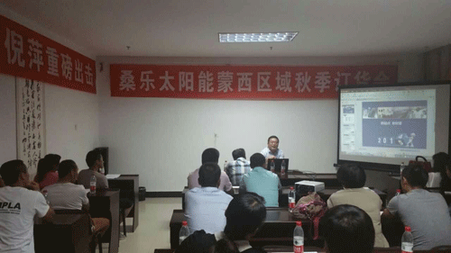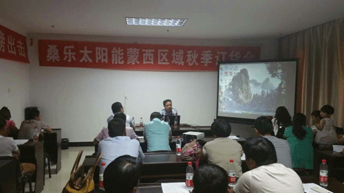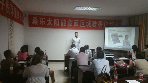 陜西公司總經(jīng)理王總參加了此次會(huì)議并講話。王總首先對(duì)未來(lái)太陽(yáng)能的市場(chǎng)發(fā)展方向給大家做了解讀,公司會(huì)加大對(duì)經(jīng)銷商的扶持力度,加強(qiáng)在央視等媒體的投放,為各位經(jīng)銷商提供更好的創(chuàng)富平臺(tái),極大增強(qiáng)了大家做大做強(qiáng)桑樂的信心!