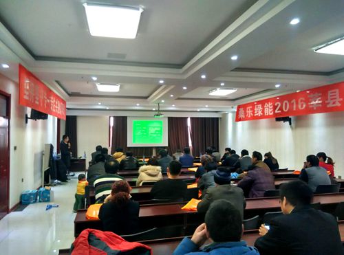 最后,魯北區(qū)域王偉經(jīng)理做了總結(jié)發(fā)言,闡述了公司在整個(gè)2015年的發(fā)展變化和桑樂(lè)綠能品牌戰(zhàn)略的全面升級(jí),桑樂(lè)成功打造了以發(fā)電、熱水、采暖、凈水、空氣凈化等為代表的完整的綠色能源系統(tǒng),已成功轉(zhuǎn)型為綠色能源生活方案解決服務(wù)商,新桑樂(lè)綠能理念必將深入人心,王經(jīng)理號(hào)召大家行動(dòng)起來(lái),決戰(zhàn)2016莘縣市場(chǎng)!