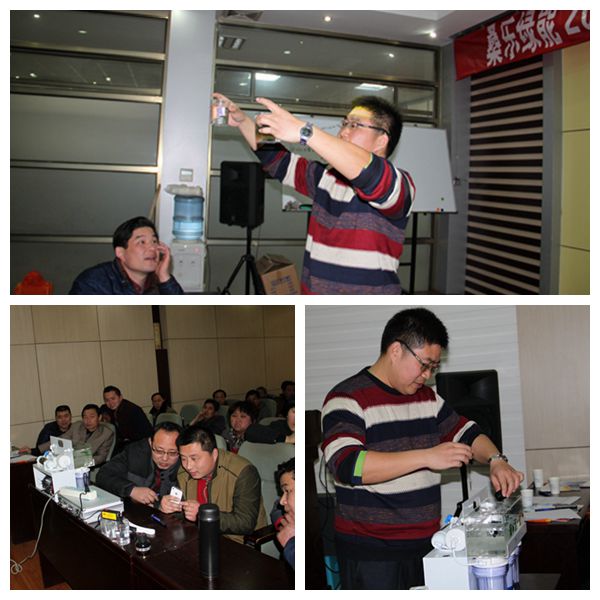 會上對大家關(guān)注的飲用健康水進(jìn)行了知識培訓(xùn),凈水機(jī)專家楊煒烽經(jīng)理著重講解了凈水機(jī)推廣,并當(dāng)場給經(jīng)銷商做了凈水機(jī)演示,當(dāng)自來水經(jīng)電解后出現(xiàn)多種雜質(zhì)時,經(jīng)銷商都熱情高漲,更真正認(rèn)識到健康水的重要性。