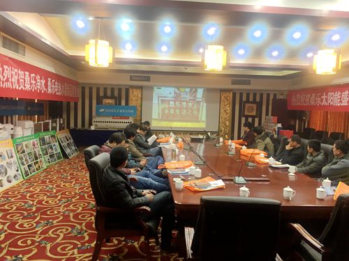會上,滁州區(qū)域經理姚光強講解了桑樂新產品的賣點和具體的參數(shù)性能,指出在當前市場新環(huán)境下,國家對新能源行業(yè)的大力扶持,消費者健康意識的逐步增強,桑樂太陽能、凈水機市場的大面積深層次推廣都對市場下一步發(fā)展注入了強心劑。市場是做出來的,而不是等出來的,希望經銷商一定要把握住市場機會,博得先機。