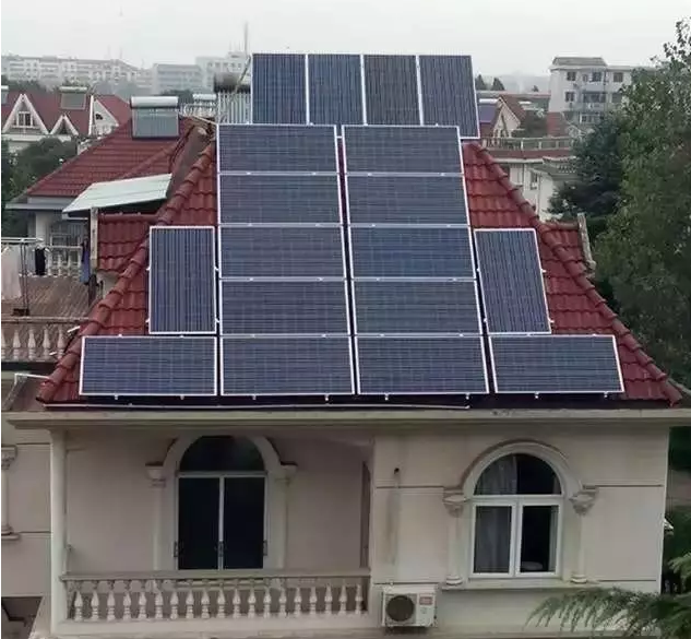 光伏居民發(fā)電系統(tǒng)由:支架、太陽(yáng)能組件、并網(wǎng)逆變器、電源箱、光伏電表組成以下圖例