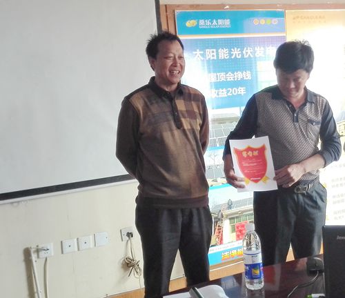 歷經(jīng)半個(gè)月的齊心協(xié)力,活動(dòng)取得了圓滿的成功。活動(dòng)的成功舉辦,與桑樂在寧晉地區(qū)的強(qiáng)勢(shì)是分不開的。桑樂團(tuán)購會(huì)期間得到了公司的全力支持和各級(jí)經(jīng)銷商的通力配合,組織了經(jīng)銷商訓(xùn)練營(yíng),培訓(xùn)了活動(dòng)的相關(guān)內(nèi)容。河北大區(qū)孔國(guó)興經(jīng)理針對(duì)寧晉光伏市場(chǎng)發(fā)展做了巡回演講,經(jīng)銷商現(xiàn)場(chǎng)簽訂了光伏銷售軍令狀。團(tuán)購活動(dòng)得到了鄉(xiāng)鎮(zhèn)經(jīng)銷商的積極響應(yīng),活動(dòng)當(dāng)天分布式家庭電站銷售18套,隨著光伏意向客戶群體的建立和掃尾工作的進(jìn)行,團(tuán)購會(huì)后捷報(bào)頻傳。