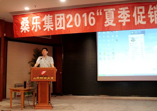 6月28日,桑樂集團(tuán)2016年“夏季促銷活動(dòng)總動(dòng)員”大會(huì)在山東濟(jì)南新聞大廈舉行,桑樂集團(tuán)全體銷售人員參會(huì),集團(tuán)董事長王雪廣蒞臨本次大會(huì)并講話。