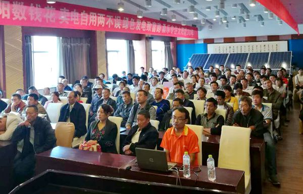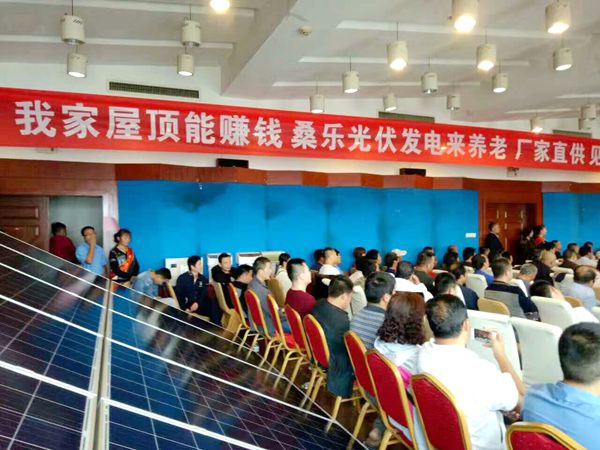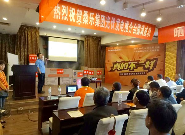 會(huì)上,蔡先奎經(jīng)理介紹了桑樂公司30年發(fā)展的歷史和現(xiàn)狀,介紹了各品類系列的桑樂產(chǎn)品。桑樂集團(tuán)光伏事業(yè)部何茂濤經(jīng)理講解了光伏電站發(fā)電的知識,國家光伏政策補(bǔ)貼及光伏家庭電站安裝注意事項(xiàng)。桑樂公司銷售經(jīng)理王信華做了光伏推介會(huì)訂貨政策解讀,光伏電站帶來的豐厚收益及光伏發(fā)電未來的機(jī)遇。