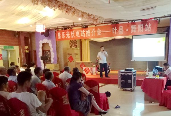 桑樂河南公司副總經(jīng)理王恩記來到會議現(xiàn)場進行了指導(dǎo),并進行了精彩發(fā)言。王經(jīng)理從光伏產(chǎn)業(yè)的發(fā)展,國家政策支持等多方面進行了剖析,讓老百姓看到了投資光伏能帶來的美好前景。