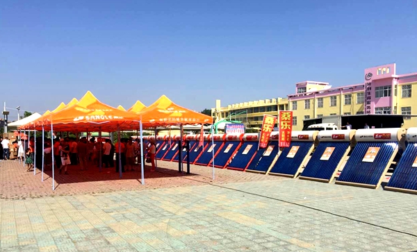 冒著六月酷暑,大家積極參與,阜陽市太和縣經(jīng)銷商都參加了這場團購會,活動現(xiàn)場積極活躍,桑樂全系列產(chǎn)品都得到大力推廣。活動現(xiàn)場有桑樂太陽能新品,光伏家庭電站、凈水機、電熱水器等。考慮到當天35度的高溫,現(xiàn)場設(shè)置了專門的遮光休息區(qū),并配備了扇子、遮陽傘,給客戶提供了一個舒適的購物環(huán)境。