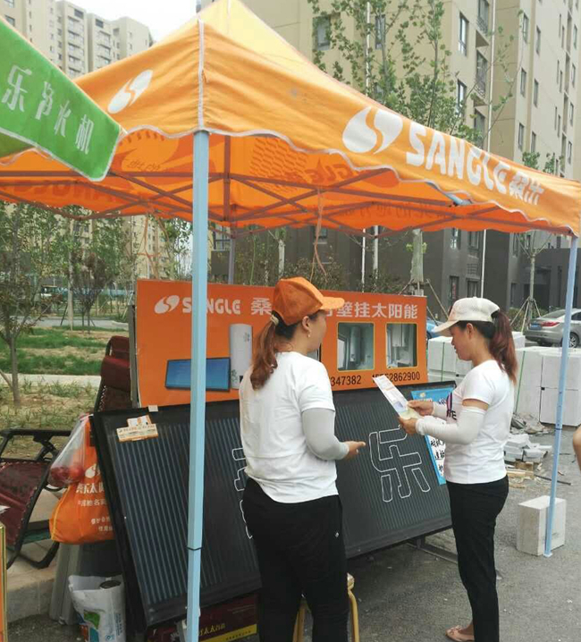 近10年來,隨著中國城市化的進(jìn)程加大,在國家政策利好推動下,濟(jì)南市100米下建筑強(qiáng)裝令的出臺,陽臺壁掛太陽能市場的需求量越來越大。從平房到樓房,從樓房到高層,魯霞時刻把握城市的脈搏,哪里新小區(qū)落成就往哪里搞小區(qū)展銷活動,3個人一組,常年奔走在新建小區(qū)周圍,老式小區(qū)則采取“以舊換新”的模式,每個周末必有桑樂臨時搭建的帳篷,她們就像流動紅旗,走遍城市的大小角落,魯霞從小做到大,從弱做到強(qiáng),處處都有她辛勤勞作的身影,一年下來竟也積攢了不小的成績。
