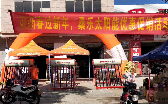 2018年1月15日,王齊江組織鄉(xiāng)鎮(zhèn)經(jīng)銷商集中在文羅搞活動?;顒忧捌谶M(jìn)行了半個月的預(yù)熱,走訪了大量客戶,挨家挨戶發(fā)宣傳單頁。在走訪中,了解到當(dāng)?shù)鼐用駥λ挠残孕枨螅觚R江提出了“購買桑樂太陽能,送水塔”的促銷方案。在當(dāng)天的促銷活動中,賣了26臺太陽能,極大調(diào)動了鄉(xiāng)鎮(zhèn)經(jīng)銷商的積極性。這些賣出的太陽能在一周之內(nèi)完全裝好,同時進(jìn)行了回訪,樹立了桑樂在客戶心中的品牌形象。