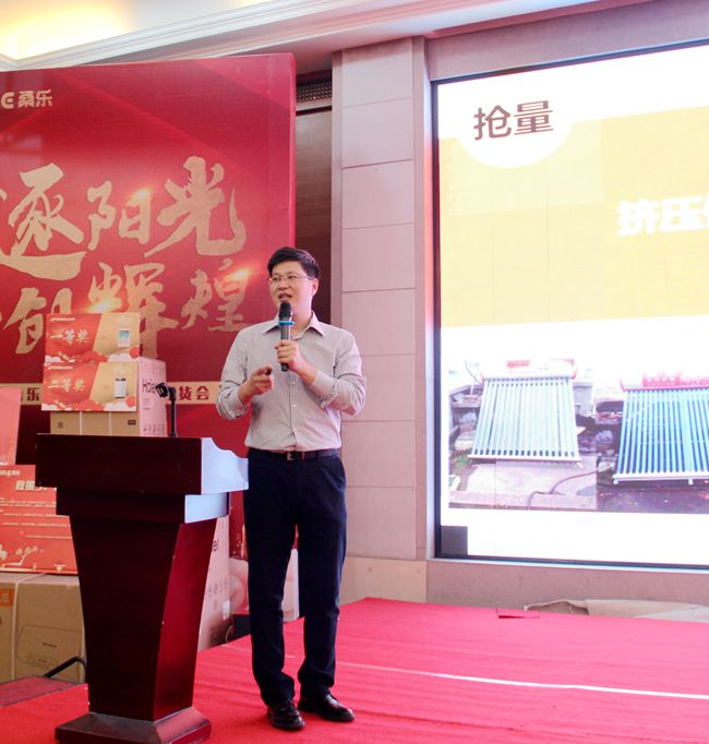 市場(chǎng)部部長國升進(jìn)行了《以舊換新選桑樂》啟動(dòng)宣講,桑樂集團(tuán)“紅五月”以舊換新正式啟航。桑樂作為全國知名太陽能品牌、山東省名牌,品牌知名度美譽(yù)度高,家喻戶曉,更有知名央視主持人倪萍傾情代言,值此桑樂太陽能30年發(fā)展之際,產(chǎn)品配合中國風(fēng)的產(chǎn)品設(shè)計(jì),今年新推出的倪萍推薦款、狗年定制版的新款熱水器,贏得了市場(chǎng)好評(píng)。2018年集團(tuán)布局全國戰(zhàn)略,穩(wěn)扎穩(wěn)打,集中突破,將“以舊換新”進(jìn)行到底。太陽能以舊換新,就選30年的桑樂! 選30年的大品牌,用30年的好產(chǎn)品,交30年的好朋友!