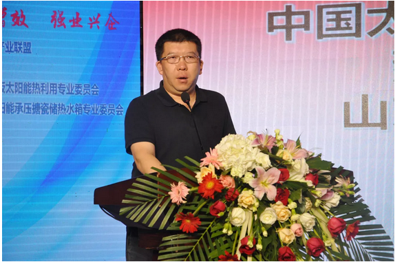平板太陽(yáng)能熱利用專業(yè)委員會(huì)主任單位、山東桑樂(lè)太陽(yáng)能有限公司副總經(jīng)理馮磊致辭