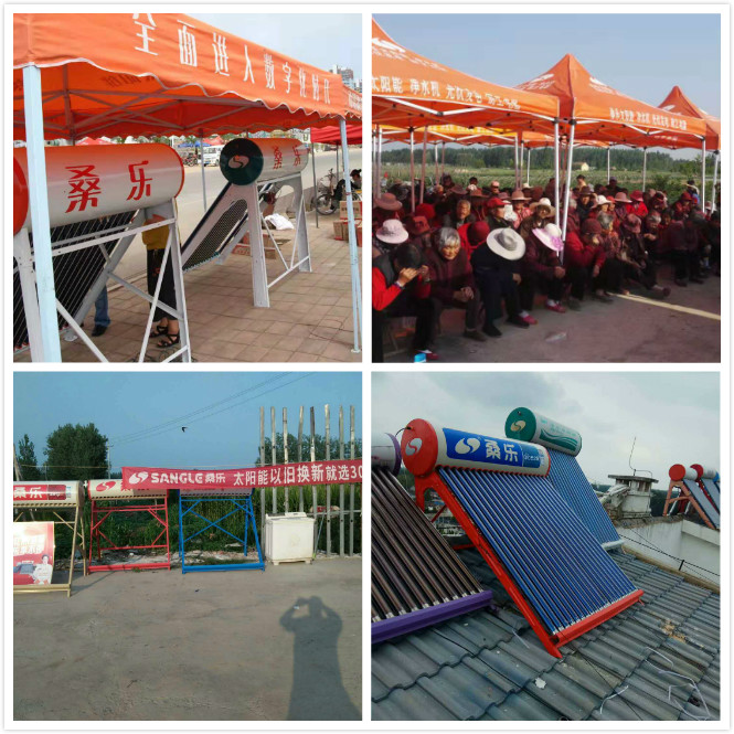 苗書賓的另一張經(jīng)營王牌是促銷活動(dòng)。近年來,苗書賓一直跟著公司的營銷思路走,帶領(lǐng)鄉(xiāng)鎮(zhèn)、村級(jí)大力開展各項(xiàng)營銷活動(dòng)。小區(qū)展銷、以舊換新、上門推銷等都取得了不錯(cuò)的成績。其中以舊換新尤為突出,共計(jì)10余場。今年7月份,迎來太陽能銷售市場旺季,苗書賓親自帶領(lǐng)經(jīng)銷商組建檢修隊(duì)伍,挨家挨戶上門巡檢,對(duì)于有明顯質(zhì)量問題,或者使用超過10年以上有安全隱患等舊機(jī)器建議用戶換新機(jī)。并在鎮(zhèn)上、門店等掛條幅、布置宣傳物料,為以舊換新宣傳造勢(shì)。田橋鎮(zhèn)僅在7月份以舊換新將近賣了50臺(tái),創(chuàng)歷史新高。