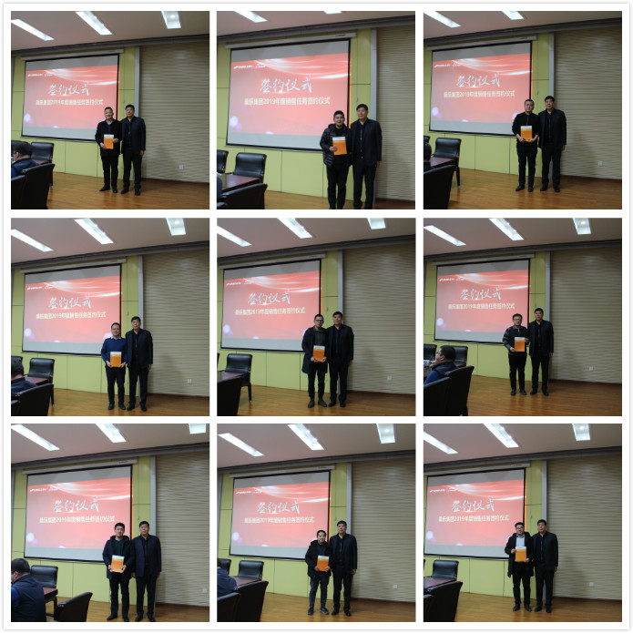 張總主持本次會議,會議首先由馮總公布了2018年各區(qū)域任務(wù)完成情況及考核結(jié)果通報,同時馮總做了2019年春雷考核管理辦法宣讀、12月份春雷完成情況通報、12月各銷售區(qū)域考核結(jié)果。然后張總宣讀了2019年集團(tuán)領(lǐng)導(dǎo)班子目標(biāo)責(zé)任書。會上董事長依次與集團(tuán)領(lǐng)導(dǎo)班子、各銷售區(qū)域簽署了2019年集團(tuán)銷售目標(biāo)責(zé)任書。