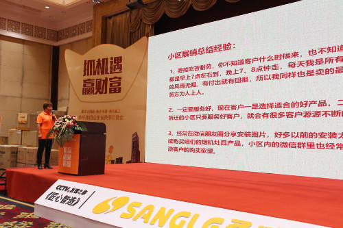 董事長用杜甫的《望岳》開始本次會(huì)議主旨演講,圍繞“財(cái)富和機(jī)遇”兩大主題,深入淺出的和廣大經(jīng)銷商溝通了發(fā)財(cái)致富之道,號召大家緊密配合集團(tuán)戰(zhàn)略和政策,實(shí)現(xiàn)桑樂太陽能、桑樂電器、桑樂廚衛(wèi)立體化快速發(fā)展。并祝愿廣大桑樂家人家庭幸福,生意興隆。董事長還對第三季度集團(tuán)業(yè)績做了總結(jié)回顧,結(jié)合2019年集團(tuán)的發(fā)展布局和戰(zhàn)略,和大家情緒描繪和構(gòu)畫了桑樂橙色事業(yè)的“指數(shù)級”發(fā)展道路,一同攜手同行,“一覽眾山小”。