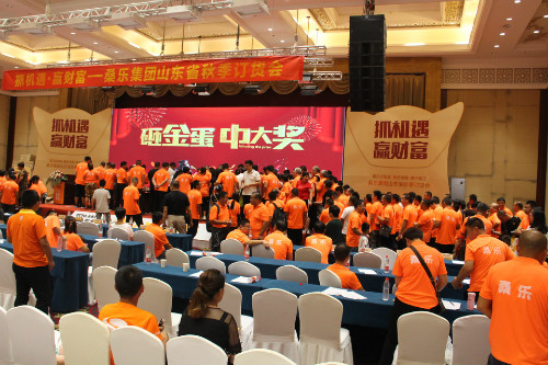 8月25日,“抓機(jī)遇、贏財(cái)富——桑樂集團(tuán)2019年山東省秋季訂貨會(huì)”于五岳之首泰安盛大召開。王雪廣董事長攜集團(tuán)領(lǐng)導(dǎo)班子及銷售團(tuán)隊(duì)代表及全省800余位經(jīng)銷商集聚于此,會(huì)議現(xiàn)場氣氛活躍、掌聲陣陣。