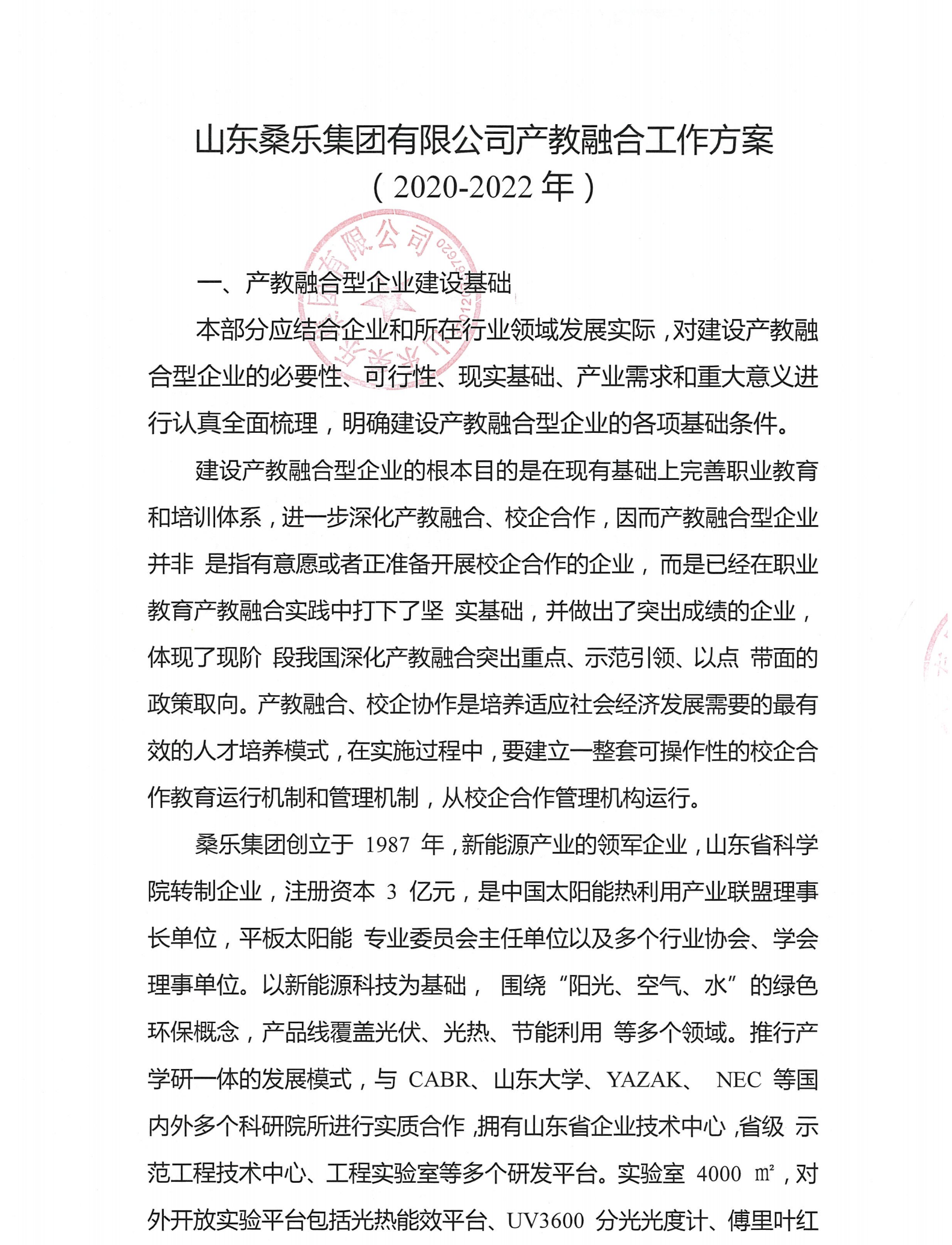 山東桑樂(lè)集團(tuán)有限公司產(chǎn)教融合規(guī)劃方案(2020-2022)