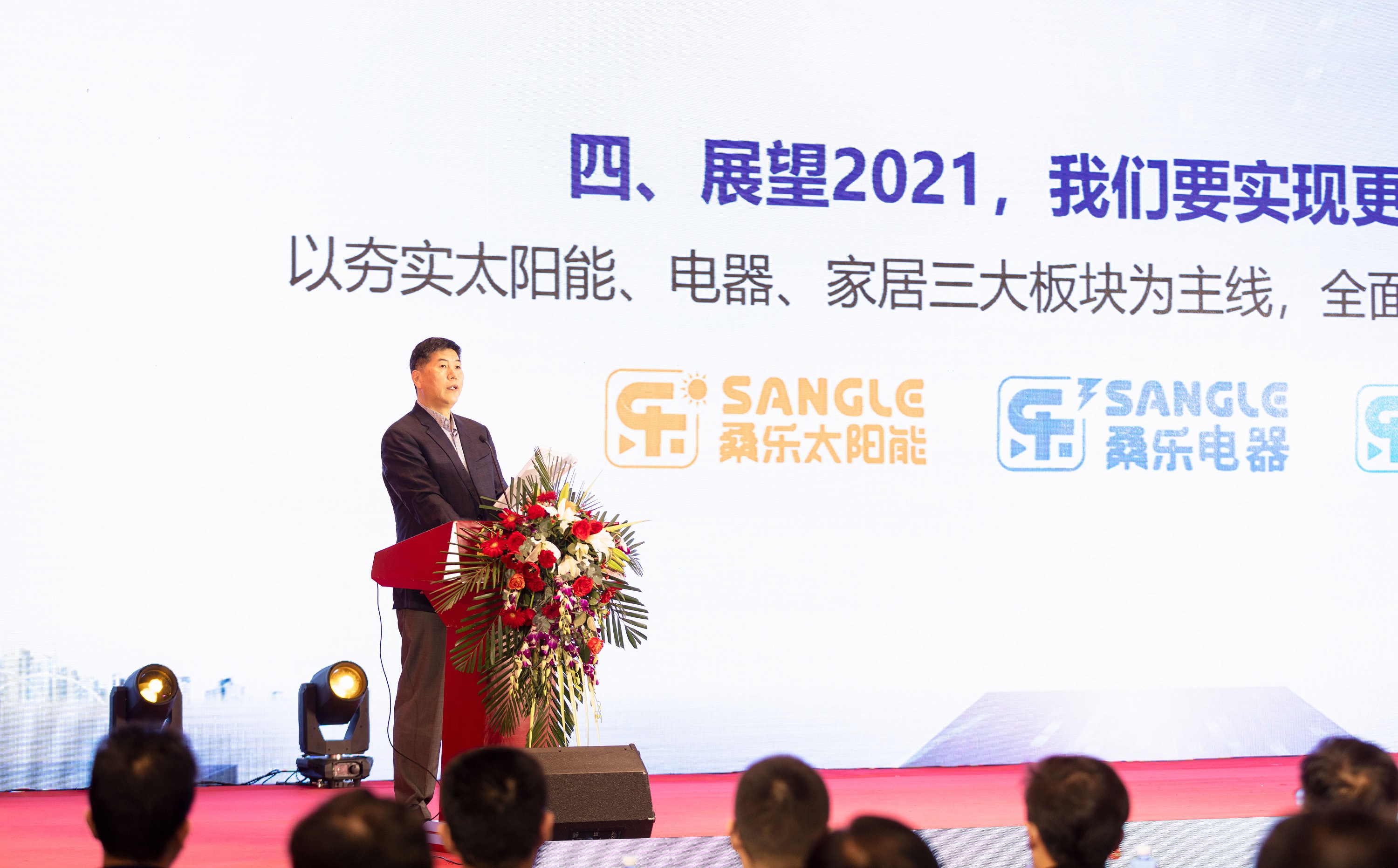 會上,董事長王雪廣發(fā)表主旨演講。首先,他代表桑樂集團全體員工向遠道而來的桑樂經銷商們表示熱烈的歡迎和最真誠的問候。他表示,面對疫情下的銷售困境,集團打響了化危為機的攻堅戰(zhàn),創(chuàng)新布局新零售,打造“線上+線下”融合發(fā)展新體系,取得了全年業(yè)績同比增長20%的可喜成績,這些成績的取得與廣大的桑樂經銷商家人們的辛苦付出和大力支持是密不可分的。更值得一提的是,桑樂已開啟集團化發(fā)展征程,今后將繼續(xù)加強各項工作的推進,達成集團全方位發(fā)展。展望2021年,集團要實現(xiàn)更大的突破,以夯實太陽能、電器、家居三大版塊為主線,全面提升銷售業(yè)績,堅持新零售模式,健全“云平臺”服務體系。桑樂的美好藍圖已徐徐展開,希望在座的桑樂經銷商家人們能夠滿懷信心,團結一致,與集團攜手并進,為實現(xiàn)共同的桑樂夢想而努力奮斗。