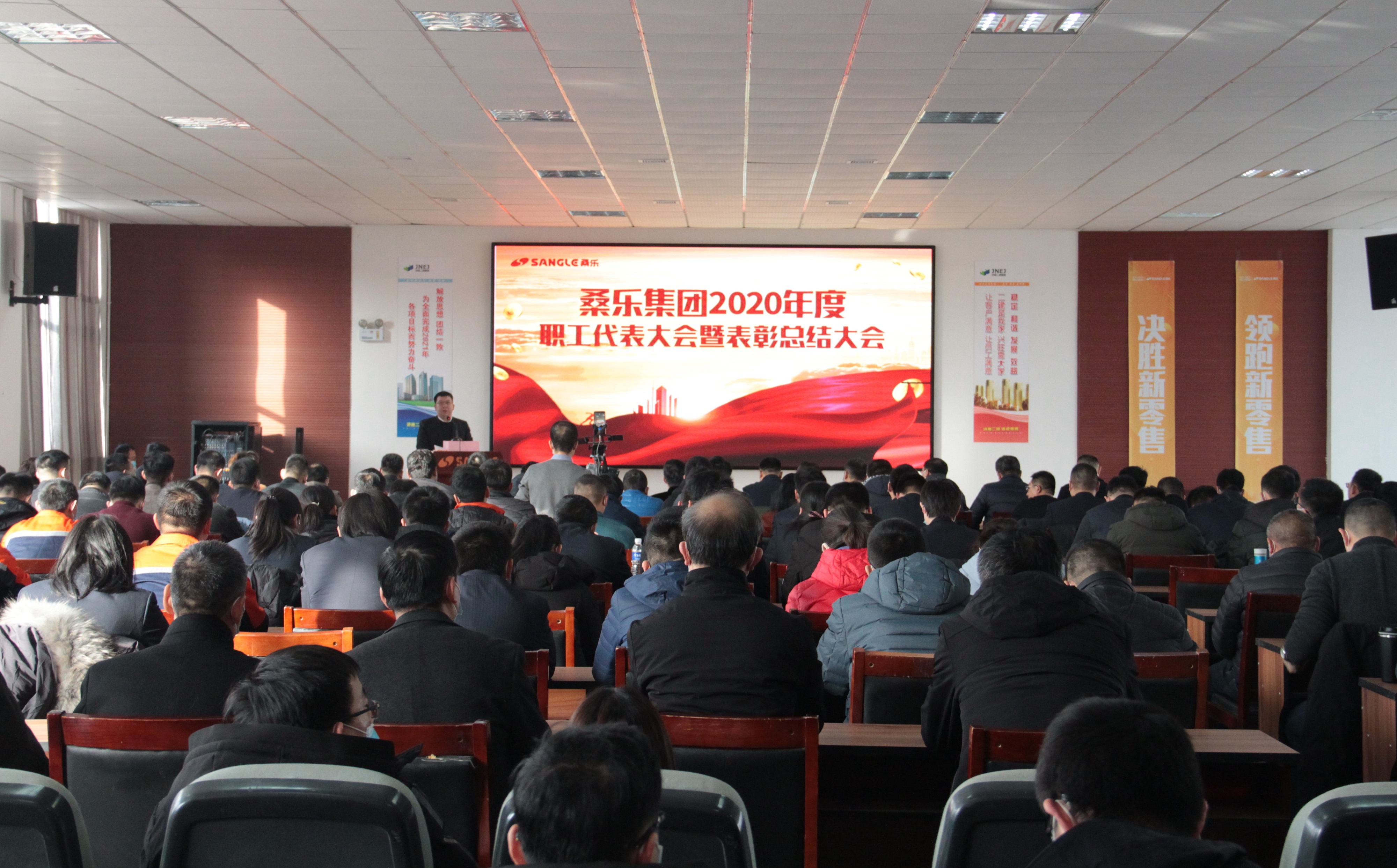 2月1日,桑樂(lè)集團(tuán)2020年度職工代表大會(huì)暨表彰總結(jié)大會(huì)在桑樂(lè)總廠隆重召開(kāi)。董事長(zhǎng)王雪廣攜集團(tuán)領(lǐng)導(dǎo)班子成員、各部門職工代表共計(jì)150余人參會(huì)。會(huì)議由常務(wù)副總經(jīng)理馮磊主持。
