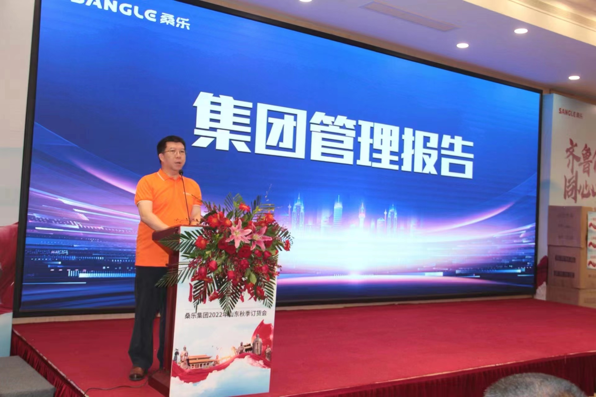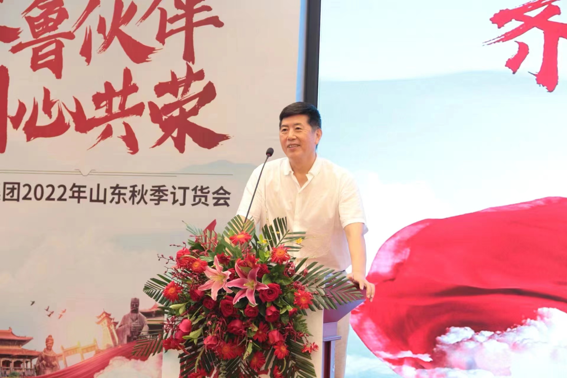 8月28日,齊魯伙伴 同心共榮—桑樂集團2022年山東秋季訂貨會正會在董事長的致辭中拉開序幕。
